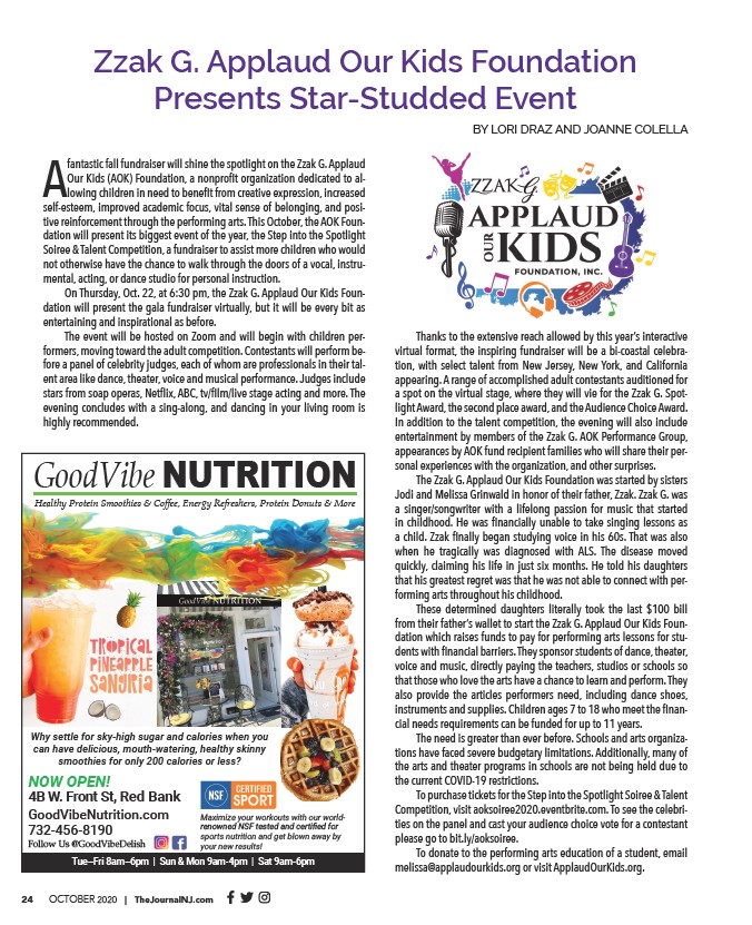 On Thursday, Oct. 22, at 6:30 pm, the Zzak G. Applaud Our Kids Foundation
