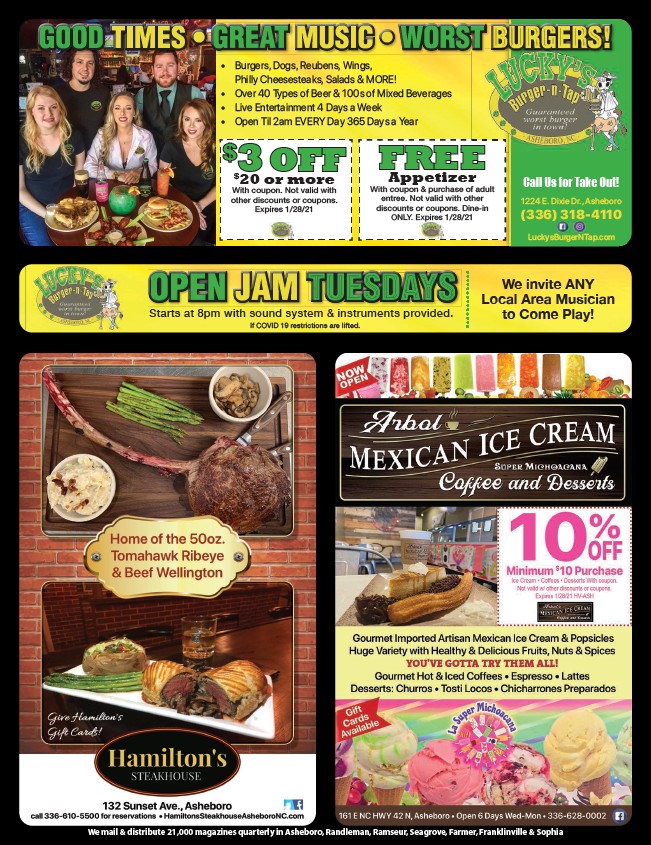 We mail & distribute 21,000 magazines quarterly in Asheboro, Randleman, Ramseur, Seagrove, Farmer, Franklinville & Sophia