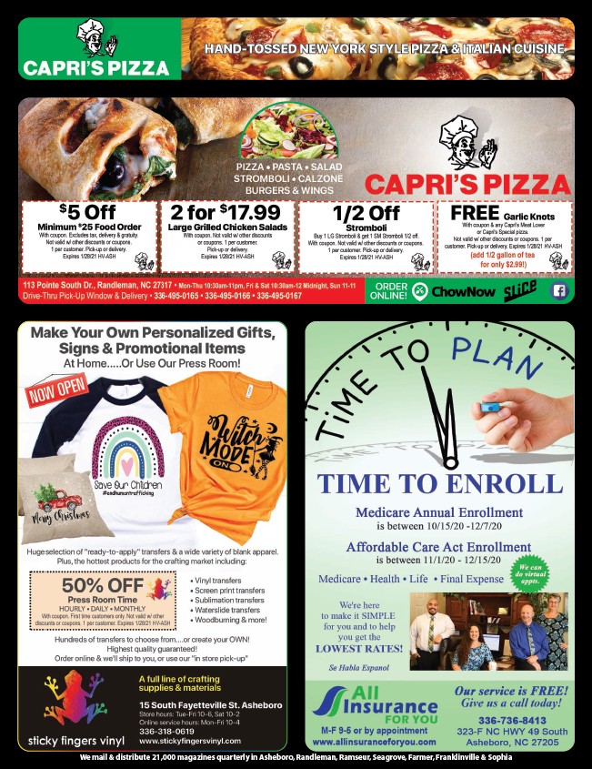 We mail & distribute 21,000 magazines quarterly in Asheboro, Randleman, Ramseur, Seagrove, Farmer, Franklinville & Sophia