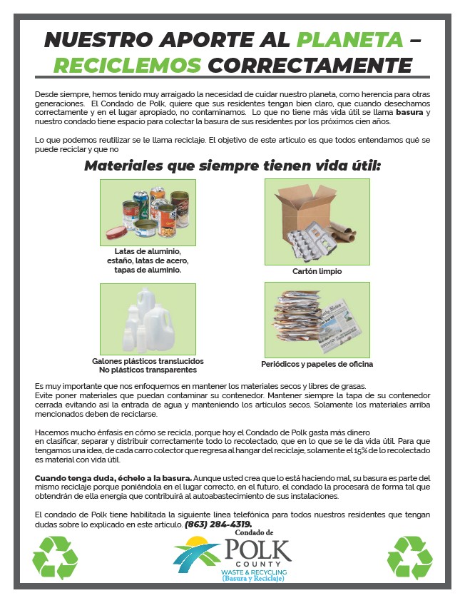 generaciones. El Condado de Polk, quiere que sus residentes tengan bien claro, que cuando desechamos