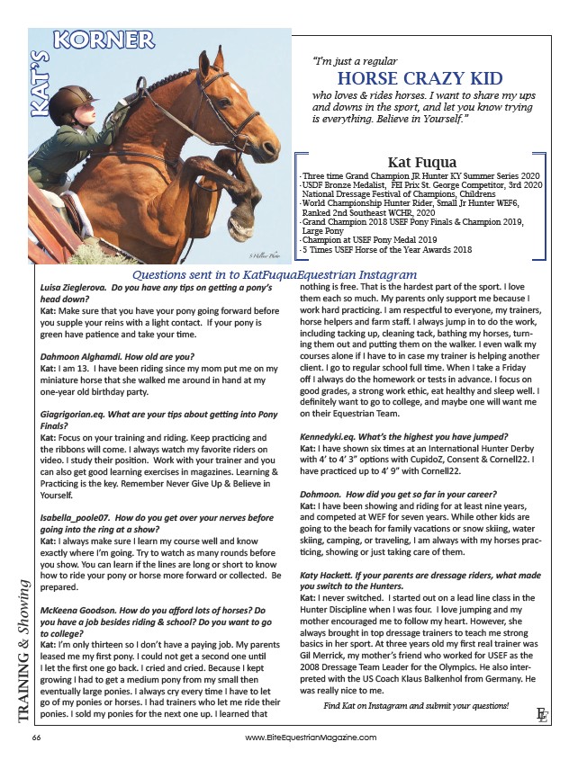 Kat: I have shown six mes at an Internaonal Hunter Derby