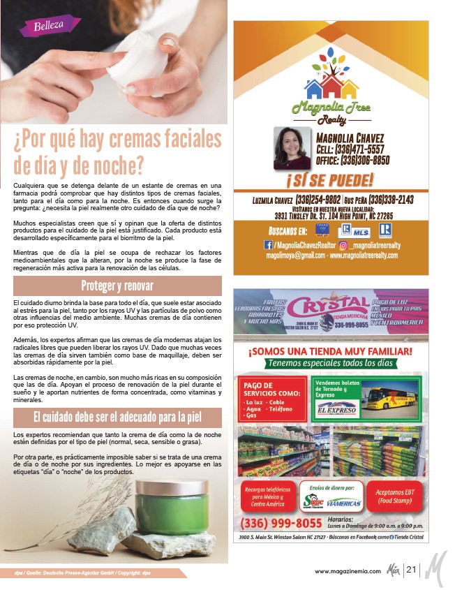 Los expertos recomiendan que tanto la crema de día como la de noche