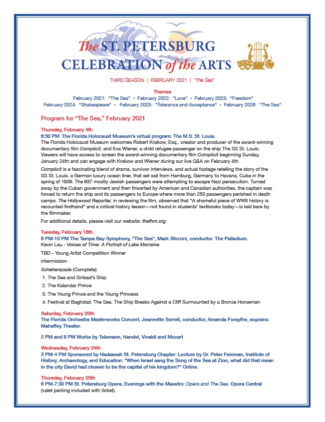 6:30 PM The Florida Holocaust Museum’s virtual program: The M.S. St. Louis.