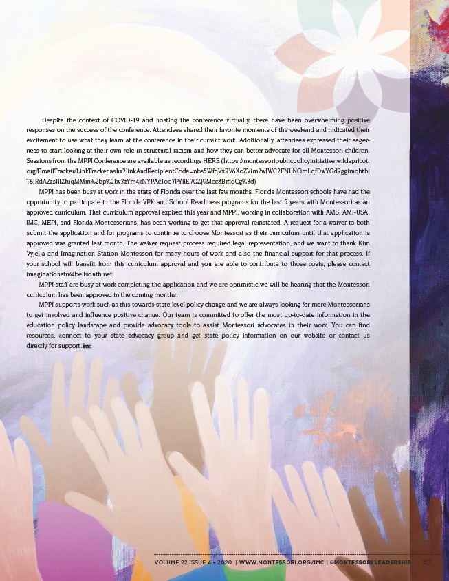 VOLUME 22 ISSUE 4 • 2020 | WWW.MONTESSORI.ORG/IMC | ©MONTESSORI LEADERSHIP