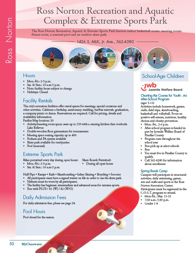 The Ross Norton Recreation, Aquatic & Extreme Sports Park features indoor basketball courts, meeting rooms,