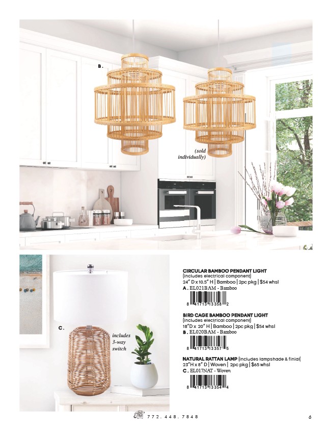 EL021BAM - Bamboo 8 4 1 7 1 3 1 3 3 5 8 2 EL020BAM - Bamboo 8 4 1 7 1 3 1 3 3 5 7 5 EL017NAT - Woven 8 4 1 7 1 3 1 3 3 5 4 4 (sold individually) includes 3-way switch