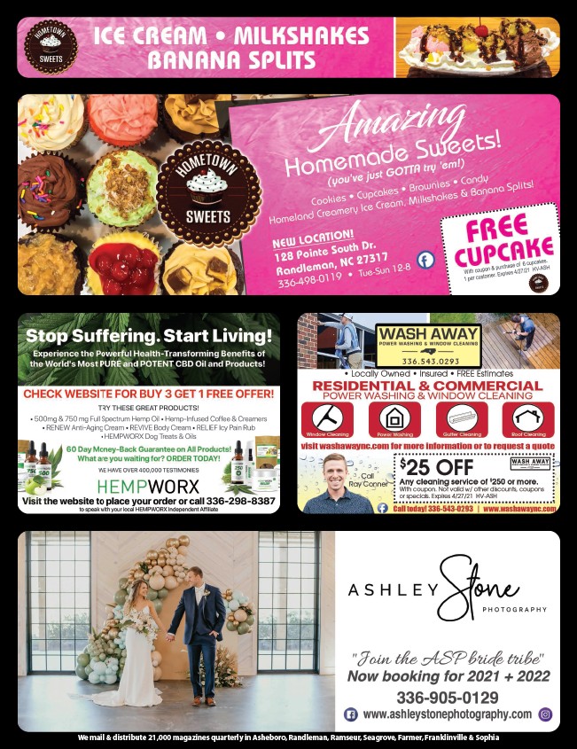 We mail & distribute 21,000 magazines quarterly in Asheboro, Randleman, Ramseur, Seagrove, Farmer, Franklinville & Sophia