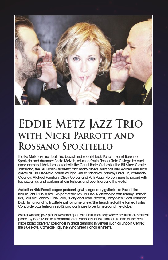 The Ed Metz Jazz Trio, featuring bassist and vocalist Nicki Parrott, pianist Rossano