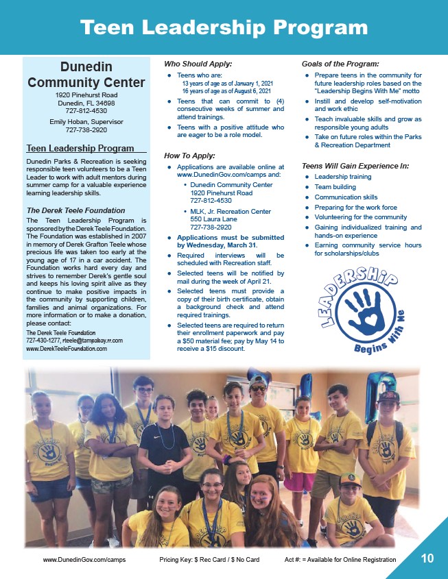www.DunedinGov.com/camps Pricing Key: $ Rec Card / $ No Card Act #: = Available for Online Registration