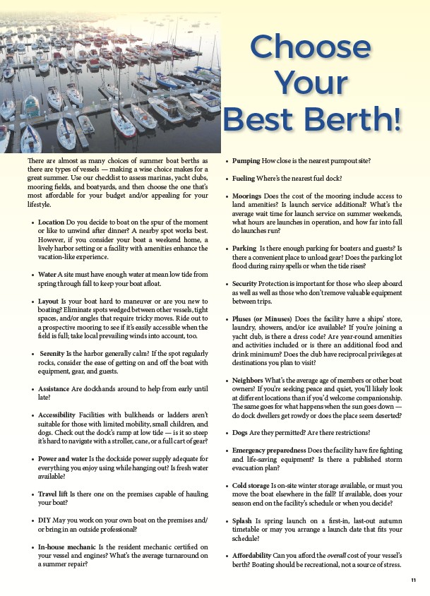 great summer. Use our checklist to assess marinas, yacht clubs,