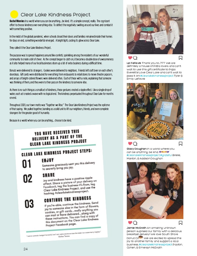 Throughout 2020, our town motto was “Together we Rise.” The Clear Lake Kindness Project was the epitome
