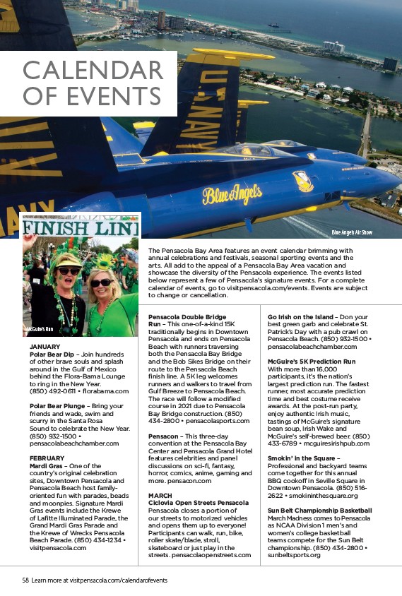 calendar of events, go to visitpensacola.com/events. Events are subject
