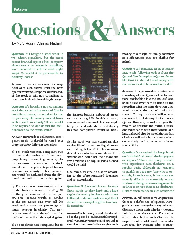 stock due to not being aware of Shari‘a
