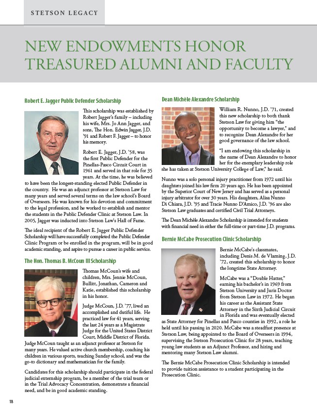 2005, Jagger was inducted into Stetson Law’s Hall of Fame.