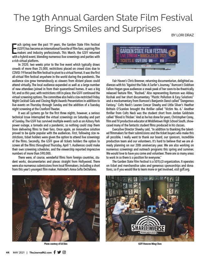 44 MAY 2021 | TheJournalNJ.com BY LORI DRAZ E - - - - - - - Photo courtesy of Ed Shin GSFF Honoree Ming Chen