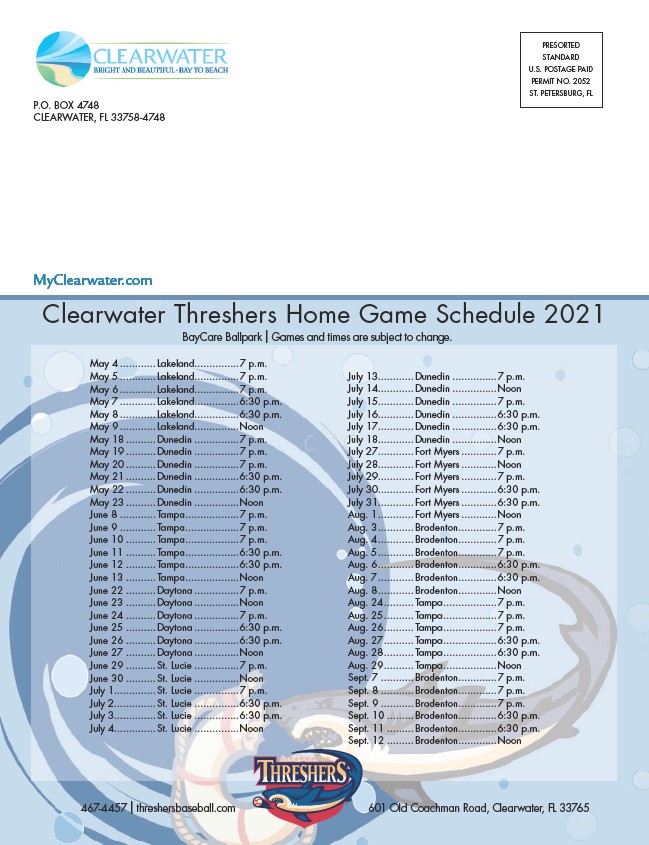 Clearwater Threshers Home Game Schedule 2021