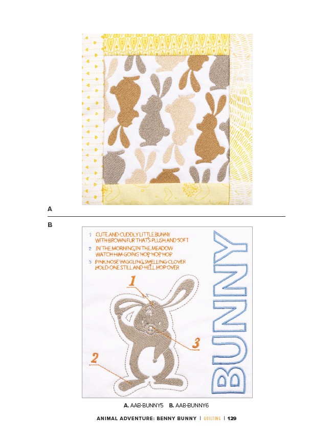 A B A. AAB-BUNNY5 B. AAB-BUNNY6 ANIMAL ADVENTURE: BENNY BUNNY | QUILTING | 129