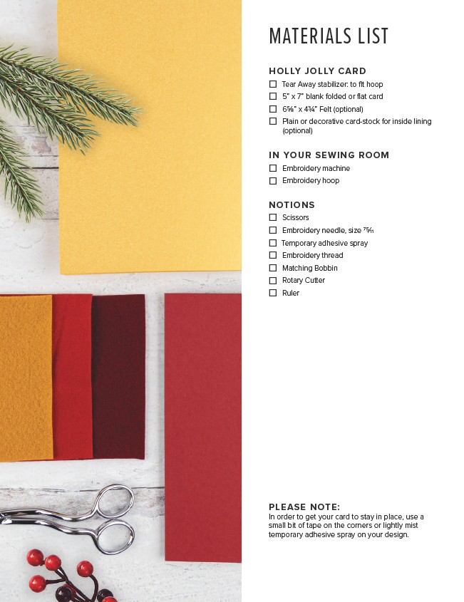 ☐ 65⁄8” x 43⁄4” Felt (optional)