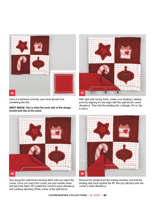and pivot the fabric 45˚ toward the corner’s seam allowance,