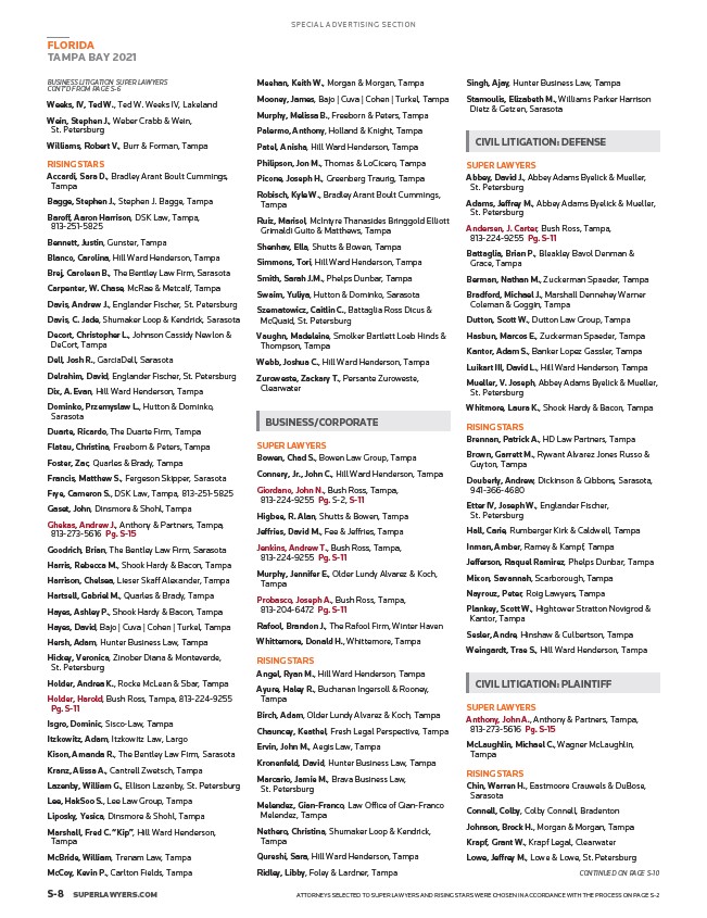 Holder, Harold, Bush Ross, Tampa, 813-224-9255