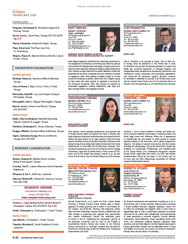 S-22 SUPERLAWYERS.COM BEFORE YOU DECIDE, ASK LAWYERS FOR FREE WRITTEN INFORMATION ABOUT THEIR QUALIFICATIONS AND EXPERIENCE.