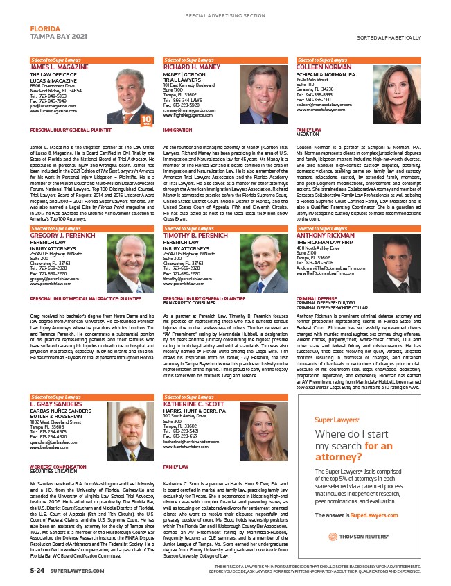 S-24 SUPERLAWYERS.COM BEFORE YOU DECIDE, ASK LAWYERS FOR FREE WRITTEN INFORMATION ABOUT THEIR QUALIFICATIONS AND EXPERIENCE.
