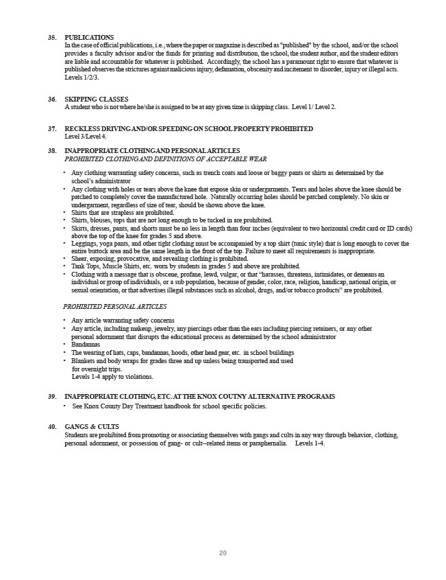 39. INAPPROPRIATE CLOTHING, ETC. AT THE KNOX COUTNY ALTERNATIVE PROGRAMS