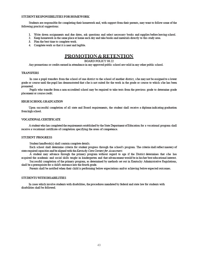 Student handbook(s) shall contain complete details.