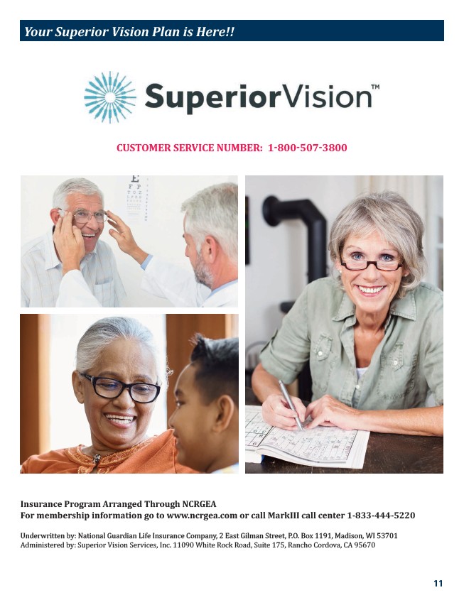 11 Insurance Program Arranged Through NCRGEA Administered by: Superior Vision Services, Inc. 11090 White Rock Road, Suite 175, Rancho Cordova, CA 95670
