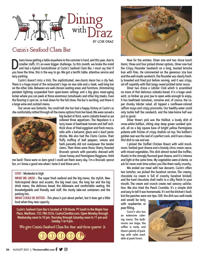 We give Cuzin's Seafood Clam Bar four and three quarter Js