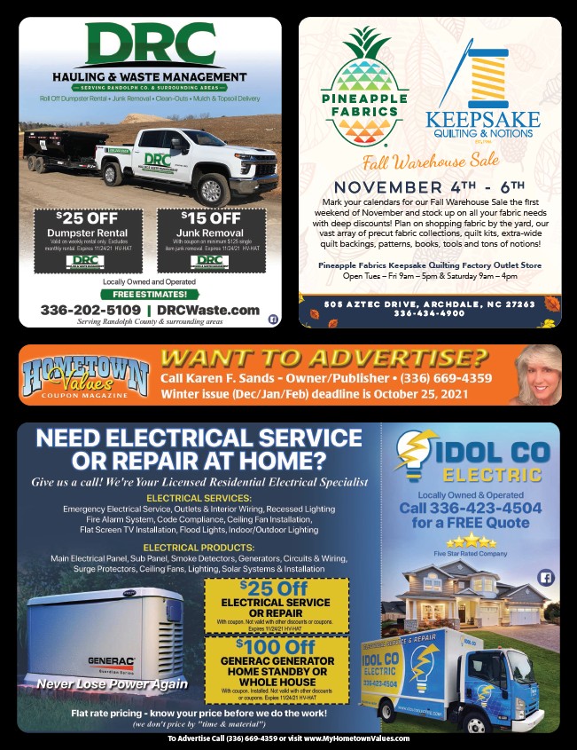 To Advertise Call (336) 669-4359 or visit www.MyHometownValues.com