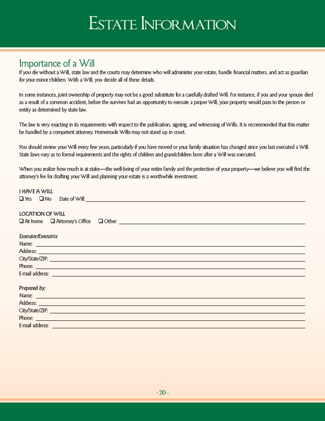 If you die without a Will, state law and the courts may determine who will administer your estate, handle financial matters, and act as guardian