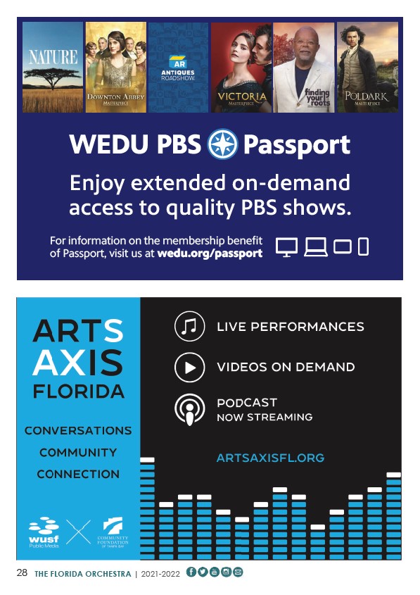 Enjoy extended on-demand access to quality PBS shows. of Passport, visit us at wedu.org/passport THE FLORIDA ORCHESTRA | 2021-2022 28