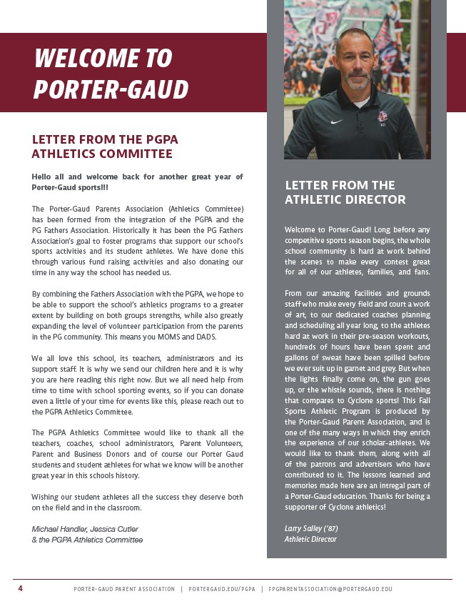 PORTER-GAUD PARENT A SSOCIATION | PORTERGAUD.EDU/PGPA | FPGPARENTASSOCIATION@4 PORT ERGAUD.EDU