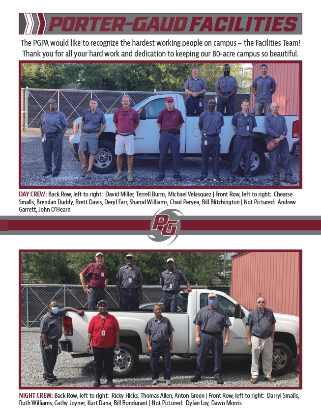 The PGPA would like to recognize the hardest working people on campus – the Facilities Team!