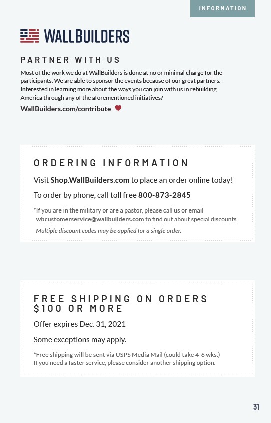 wbcustomerservice@wallbuilders.com to nd out about special discounts.