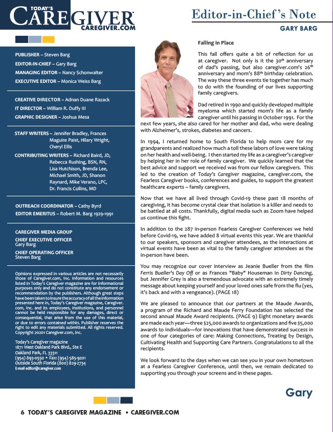 presented here in, Today’s Caregiver magazine, Caregiver.