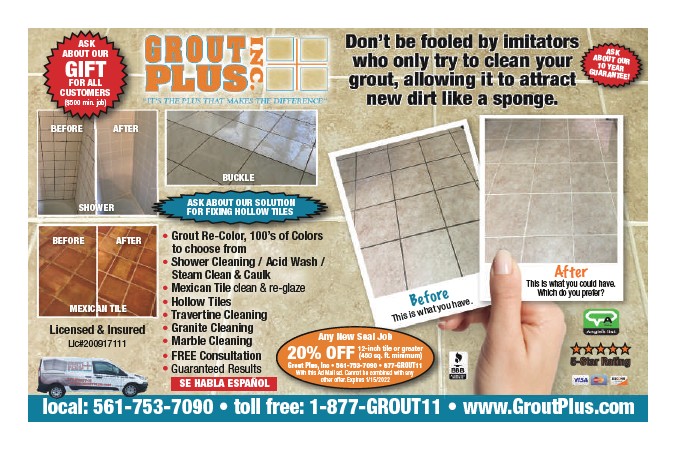 local: 561-753-7090 • toll free: 1-877-GROUT11 • www.GroutPlus.com