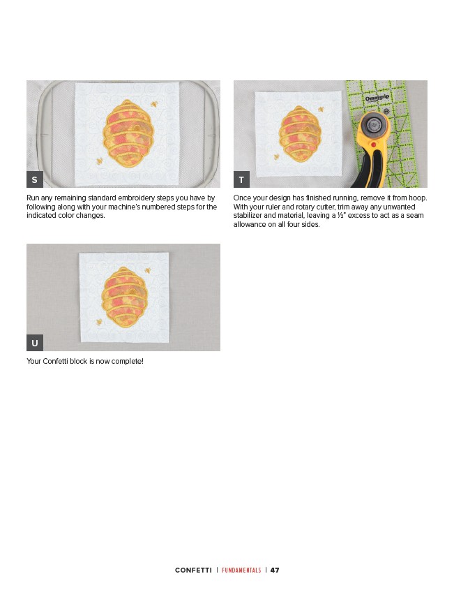 stabilizer and material, leaving a 1⁄2” excess to act as a seam
