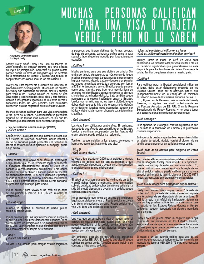 especial de inmigrante juvenil. Llame al 980-250-5173