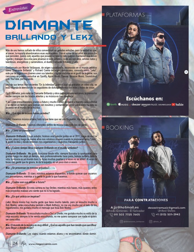 como “Diamante Brillando” y Richard Carela de origen dominicano, conocido como “Lekz”,