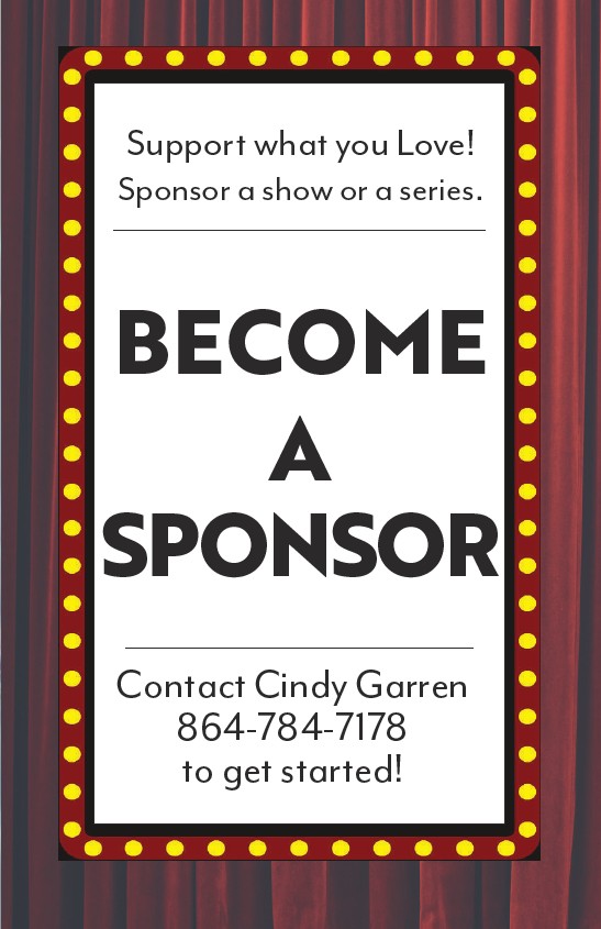 Support what you Love! Sponsor a show or a series. BECOME A SPONSOR Contact Cindy Garren 864-784-7178 to get started!