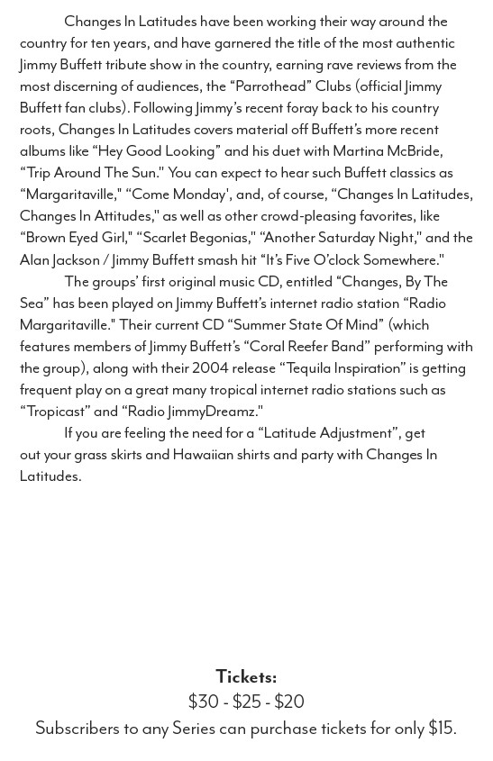 “Margaritaville," “Come Monday', and, of course, “Changes In Latitudes,