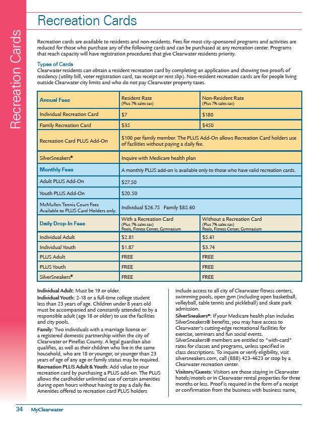 Clearwater residents can obtain a resident recreation card by completing an application and showing two proofs of