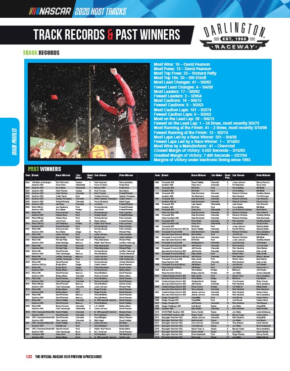 122 THE OFFICIAL NASCAR 2020 PREVIEW & PRESS GUIDE TRACK PROFILES