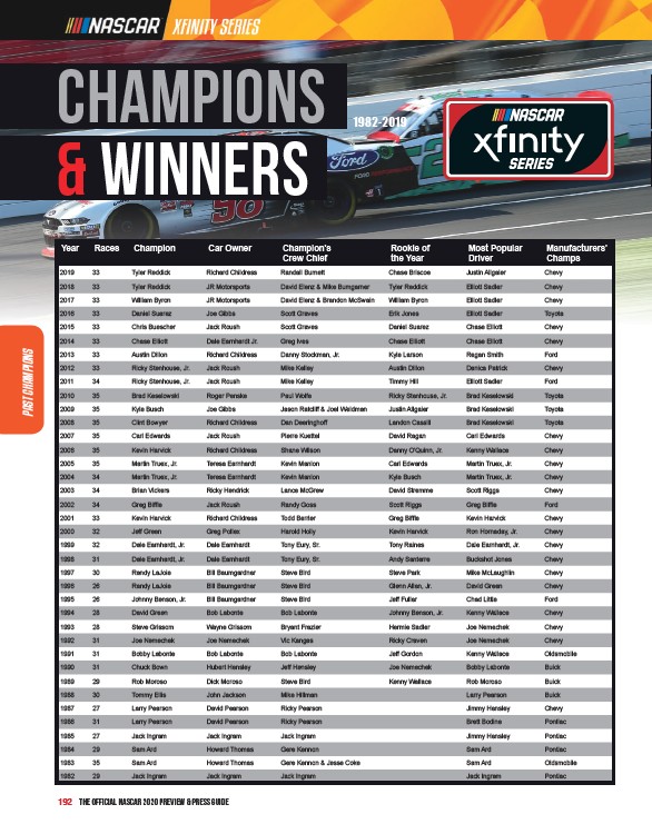 192 THE OFFICIAL NASCAR 2020 PREVIEW & PRESS GUIDE PAST CHAMPIONS