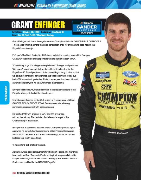 248 THE OFFICIAL NASCAR 2020 PREVIEW & PRESS GUIDE FEATURED DRIVERS