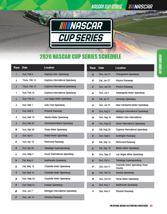 2020 NASCAR CUP SERIES SCHEDULE CUP SERIES SCHEDULE