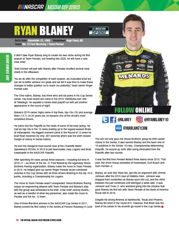 78 THE OFFICIAL NASCAR 2020 PREVIEW & PRESS GUIDE