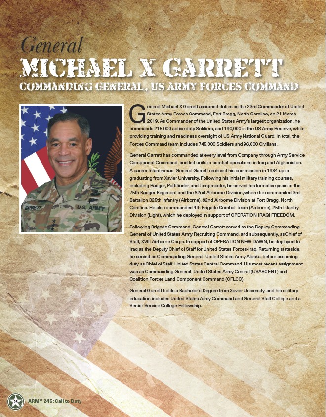 General Garrett holds a Bachelor’s Degree from Xavier University, and his military